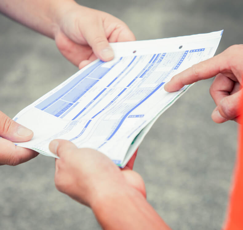 屋根土・壁土の引取り後に、お客様がご用意いただいたマニフェスト用紙に必要な情報を記入し、お渡ししております。